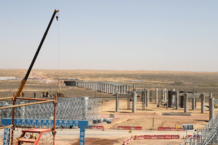據(jù)了解,烏海至瑪沁公路青銅峽至中衛(wèi)段工程采用雙向四車道高速公路標(biāo)準(zhǔn)建設(shè),設(shè)計(jì)速度100公里/小時(shí),路基寬度26.0m。目前,石嘴山至銀川段、銀川至青銅峽段已陸續(xù)建成通車,青銅峽至中衛(wèi)段正在建設(shè)中,擬于2020年年底建成通車。建成后,將基本實(shí)現(xiàn)烏瑪高速公路寧夏境路段的全線貫通。該段路線起自青銅峽市同興移民村西,經(jīng)青銅峽、中衛(wèi),穿越騰格里沙漠后,于中衛(wèi)市沙坡頭區(qū)順接定武高速,主線全長(zhǎng)122.9公里,其中需穿越騰格里沙漠腹地18公里,是國內(nèi)首條穿越沙漠腹地的高等級(jí)公路。