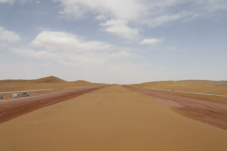 騰格里沙漠是中國四大沙漠之一,自然環(huán)境極其惡劣,降雨量小,蒸發(fā)量大,氣候溫差大,沙丘鏈分布錯(cuò)綜復(fù)雜,風(fēng)沙頻繁,風(fēng)沙危害嚴(yán)重。惡劣的自然環(huán)境和復(fù)雜的工程地質(zhì)條件該項(xiàng)目的建設(shè)帶來了極大的挑戰(zhàn)。
